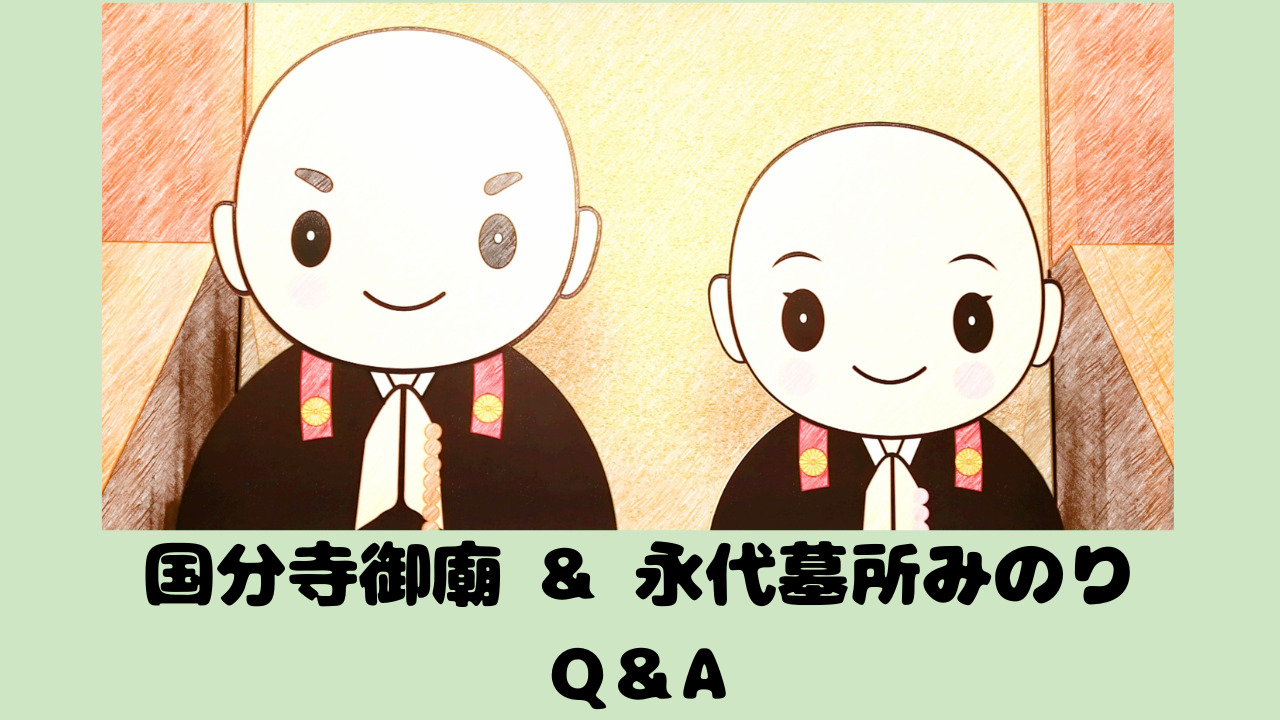 「永代墓所みのり」関連の質問は、国分寺御廟に関する質問と併せて国分寺御廟・永代墓所みのりQ&Aに掲載しています。ぜひご覧くださいませ。